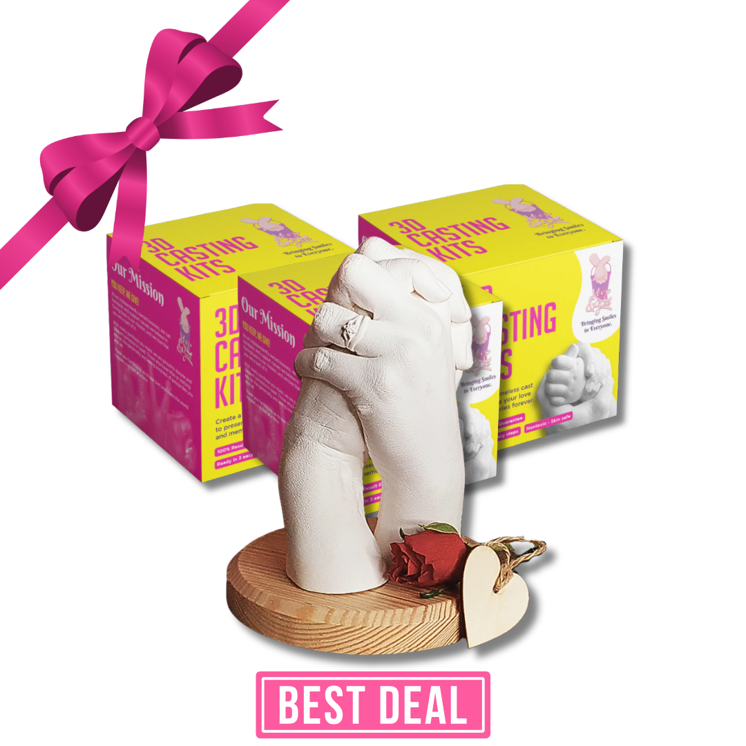 One kit fits two adult hands, one adult + one child, or up to 4 small children’s hands depending on size and pose.