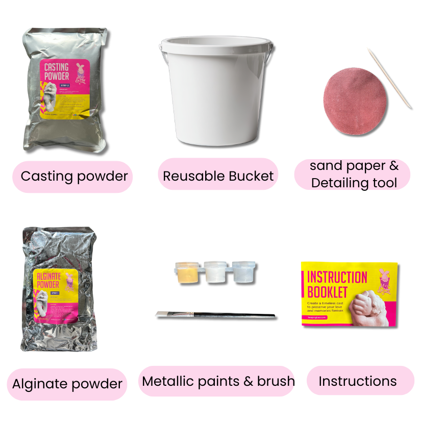 Pour the casting mixture into the mold and let it harden fully.Once set, peel away the alginate to reveal your beautiful keepsake — every line and tiny finger captured perfectly.